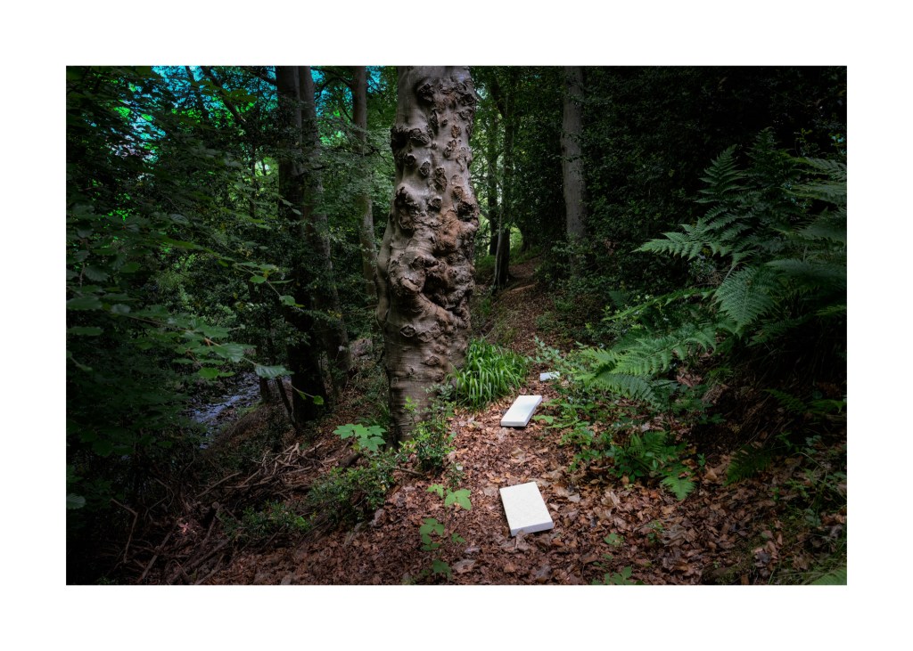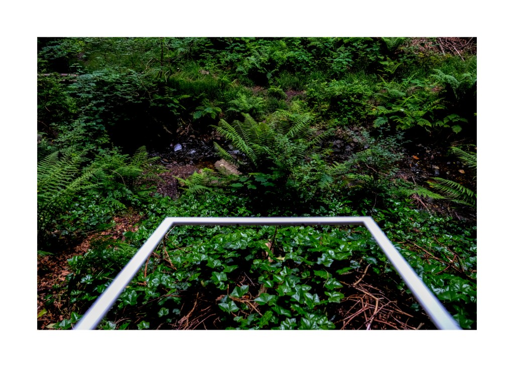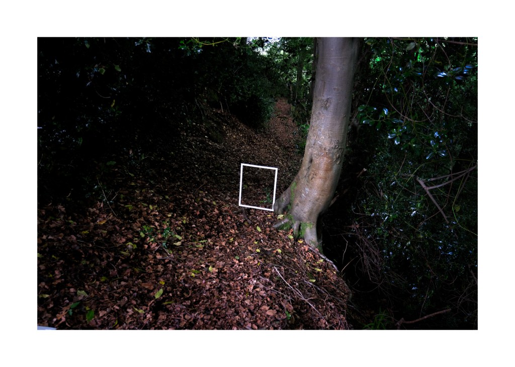 “The Past is Always Present” comments, through the motif of white blocks and white frames intruding on the scene, on the way that landscapes are not naturally occurring but are socially constructed. The urban woodland areas around my house in Inverness are the preserve of the dominant group and people who are ‘other’ will choose to avoid these places. They are spaces where vulnerability is exacerbated and the chances of negative encounters are heightened. So, although not visibly marked as such, they are landscapes of white, male privilege. They act as constant reminders of vulnerability and marginalisation.